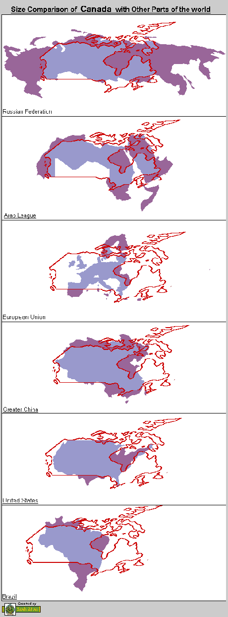 or 344,080 mi²), Canada is slightly less than three-fifths as large as Russia, nearly 1.3 times larger than