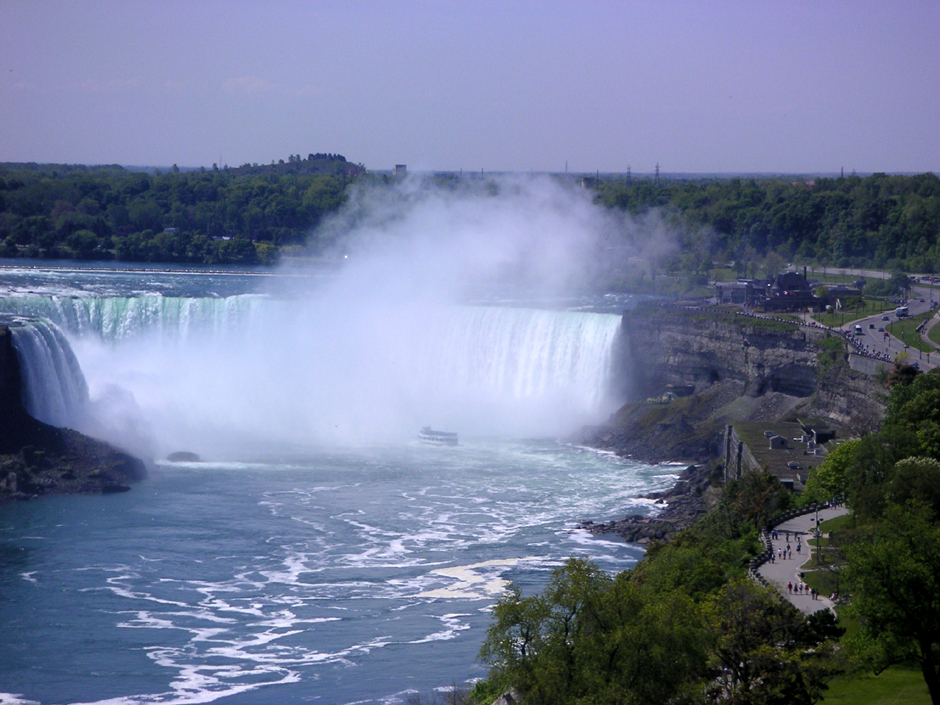 The Horseshoe Falls in Niagara Falls, Ontario, one of the world's most voluminous waterfalls,[3] a major source of hydroelectric power, and a tourist destination.