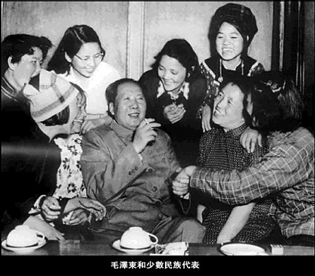| 44、本来照片的注释是“姿态优雅的江青和伟岸的毛主席”,毛确实 很伟岸,江也是有几分优雅,只不过她脚上的鞋子是个败笔。 |