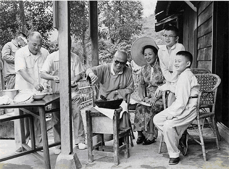 | 52、蒋、宋,两个孩子中 坐着的是宋的侄子 宋仲虎 ,蒋很喜欢野 餐,所以常常会这么搞一下,也算是一种情趣。 从照片来看,当时天气应该很热,宋美龄热的把丝袜都退了下来了, 不常见。而蒋还依旧一袭长衫,我看了蒋的照片也不下百张,但从没 有看到过他穿短袖,这可能与他一惯主张衣着得体,整洁有关系,为 人也很克制,实在是包的太严实了。 |